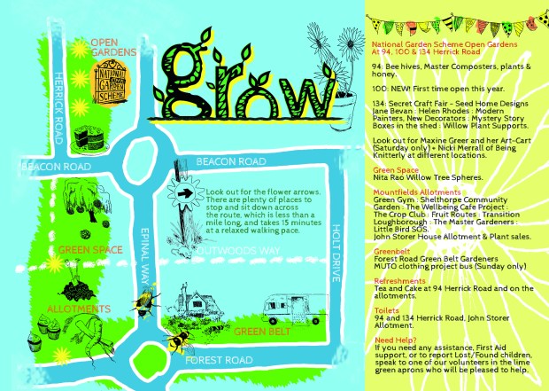 Grow, a weekend of gardens, growing, wellbeing and creativity, is a trail across three open gardens, nearby local allotments and two green spaces, showcasing local projects with a social ethos that promote the connections between creativity, gardening and wellbeing.